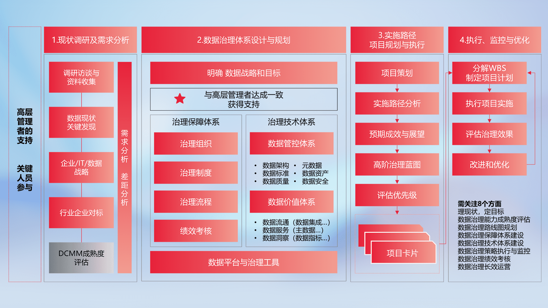 制定并执行统一的数据标准,,,,规范数据定义和格式,,,消除冗余和不一致性,,,,实现跨部门和跨系统的数据一致性,,为企业提供标准化的数据基础。。。。